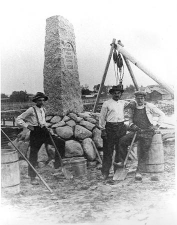 Resning av monument Gammelbro, Monument, Stenhuggare