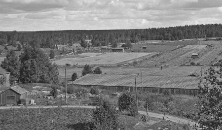 Mattfolks blockväxthus Vy över östra Kaldnäs, Närpes Mattfolks blockväxthus i förgrunden