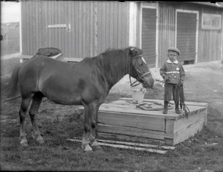 | Johanna Simons, liten pojke och häst, gårdsmiljö Öster Yttermark 1920 | 1920 |