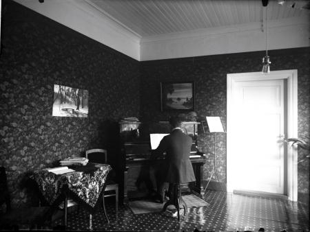 Läraren John Ivar Linde vid pianot