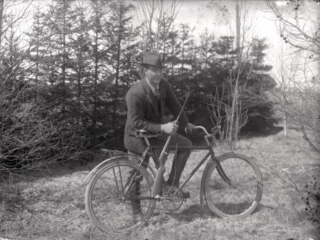 | Bonde, S. Yttermark 1924. Man med gevär på cykel | 11.5.1924 |