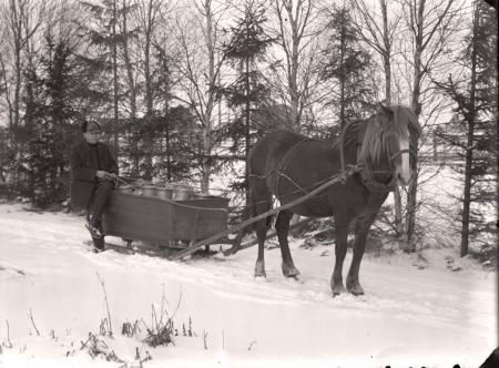 Mjölktransport häst och släde